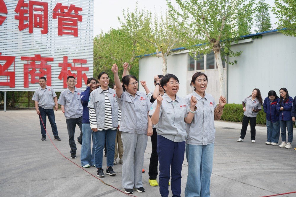 本次跳繩比賽共五支隊伍,分別是南樓辦公室、北樓辦公室、智能生產部、直管生產部、盤管生產部。戰前宣誓環節,各隊隊長振臂高呼,隊員們聲浪如潮,整個賽場沸騰著宏泰人永不言敗的熱血!